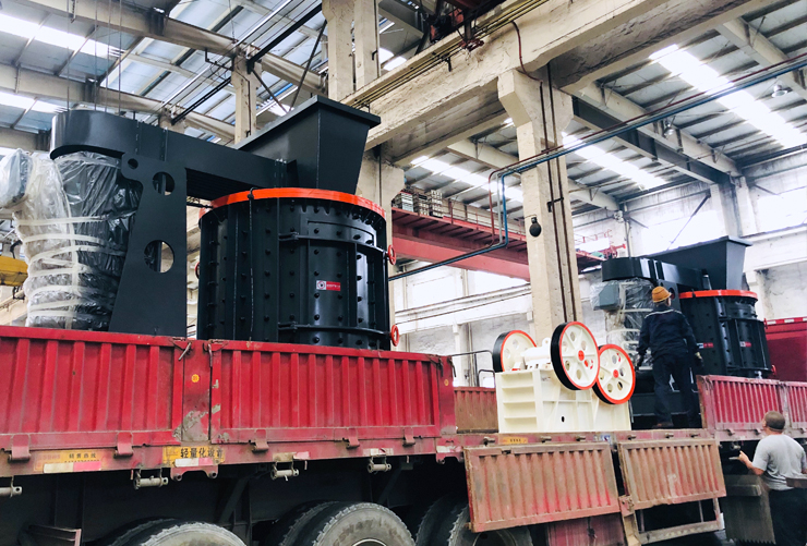 塊狀礦石由進料斗落入上破碎腔內上甩料盤上,借助甩料盤的離心力將物料拋向筒體的內壁,與安裝在內壁上的反擊板猛烈碰撞,同時物料互相撞擊,使之破碎或產生大量發(fā)絲裂紋,接著物料進入錐形轉子腔后,在錐形空間呈螺旋狀下落,經沖壓、擠壓,使已有裂紋的礦石進一步被破碎。由于錐形轉子與襯板間的斜度,促使較小的物料向下遷移,達到由大到小自動實現分級破碎。物料在錐形轉子腔內受錘頭的打擊,高速運行塊料再次與反擊板碰撞、物料流相互碰撞使物料經打擊、撞擊、剪切、擠壓面粉碎,從而提高破碎效率。