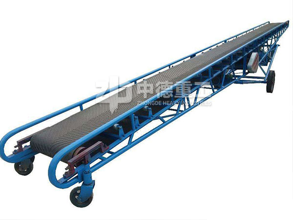 移動皮帶輸送機是一種工效高,使用機動性好的連續(xù)輸送裝卸設(shè)備。廣泛運用于港口、碼頭、車站、倉庫、料場、廠礦等地輸送煤炭、砂石、糧食、化工原料、成件物品等。移動式皮帶輸送機分為可升降型及不可升降型兩大類,輸送帶的運行靠電動滾筒驅(qū)動,整機的升降與運行均為非機動。
